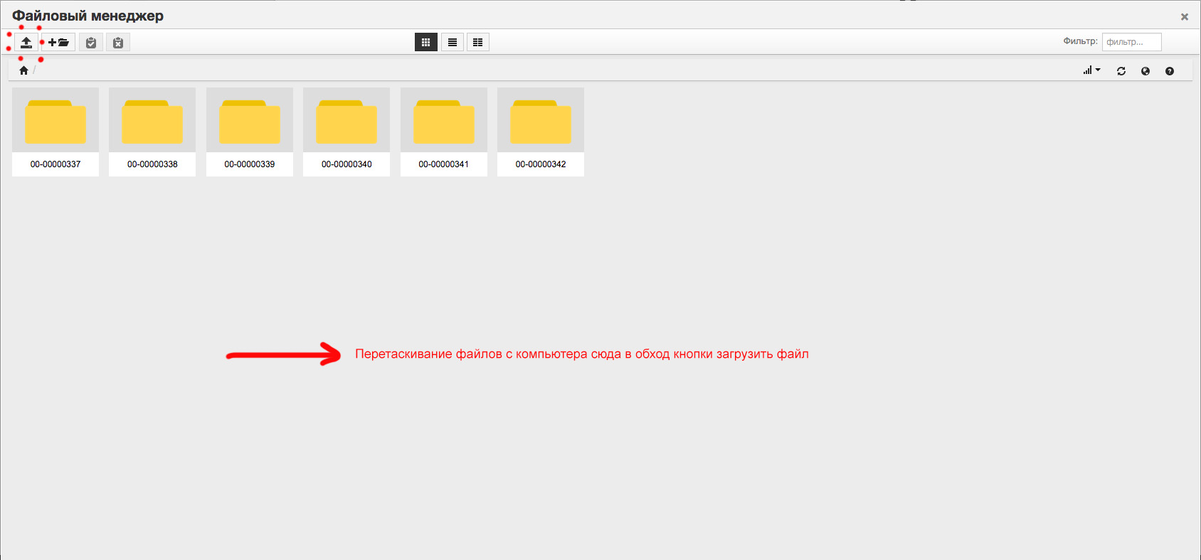 Доработать drag and drop загрузку файлов в файловом менеджере