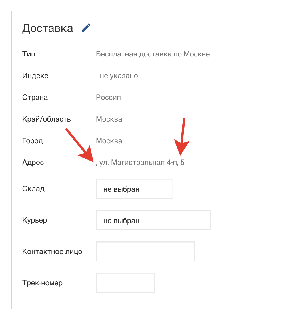 1) Если клиент при оформлении заказа самостоятельно указывает свой адрес, по потом в Админке в блоке вся эта инфа попадает в одну куча в строку адрес при этом специально выделенные поля под эти данные так и остаются пустыми. Нужно чтобы эти поля были корректно заполнены в соответствии с тем как клиент их заполнил. (см скрин)