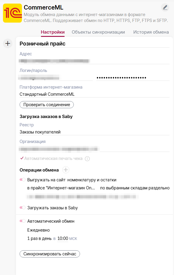 Адаптация модуля "Обмен данными с 1С" для интеграции с Saby
