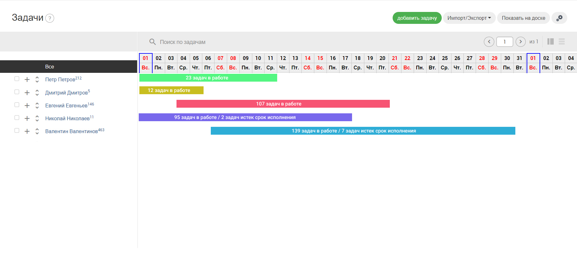 Сейчас в CRM есть отображение задач списком с настройкой шаблонов фильтров под свои нужды, есть Kanban доска и это удобно для работы с задачами, но не удобно для руководителя (видеть картину в целом по всем задачам компании). Предлагаю добавить в CRM новый тип отображения задач, в виде диаграммы Ганта. Визуально следить за задачами и сроками задач компании намного удобнее, данный тип предназначен в первую очередь для руководителей компании, но также можно к примеру вывести такую диаграмму на общий монитор, доступный всем сотрудникам и еще дать возможность самим сотрудникам планировать свою загруженность. На диаграмме предлагаю разместить список пользователей-сотрудников, рядом с именем сотрудника вывести список всех задач, в которых он является исполнителем. Визуально видим по каждому сотруднику текущие статусы задач, сроки, нагрузку на сотрудника и планируем загрузку новыми задачами. Планировать задачи при выводе задач списком, неэффективно.