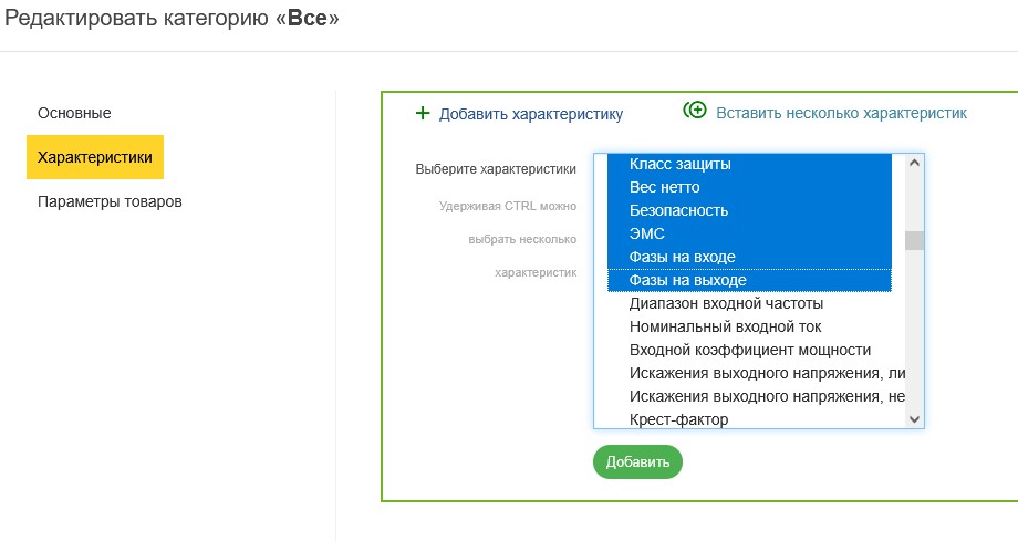 Добавление абсолютно всех характеристик к категории