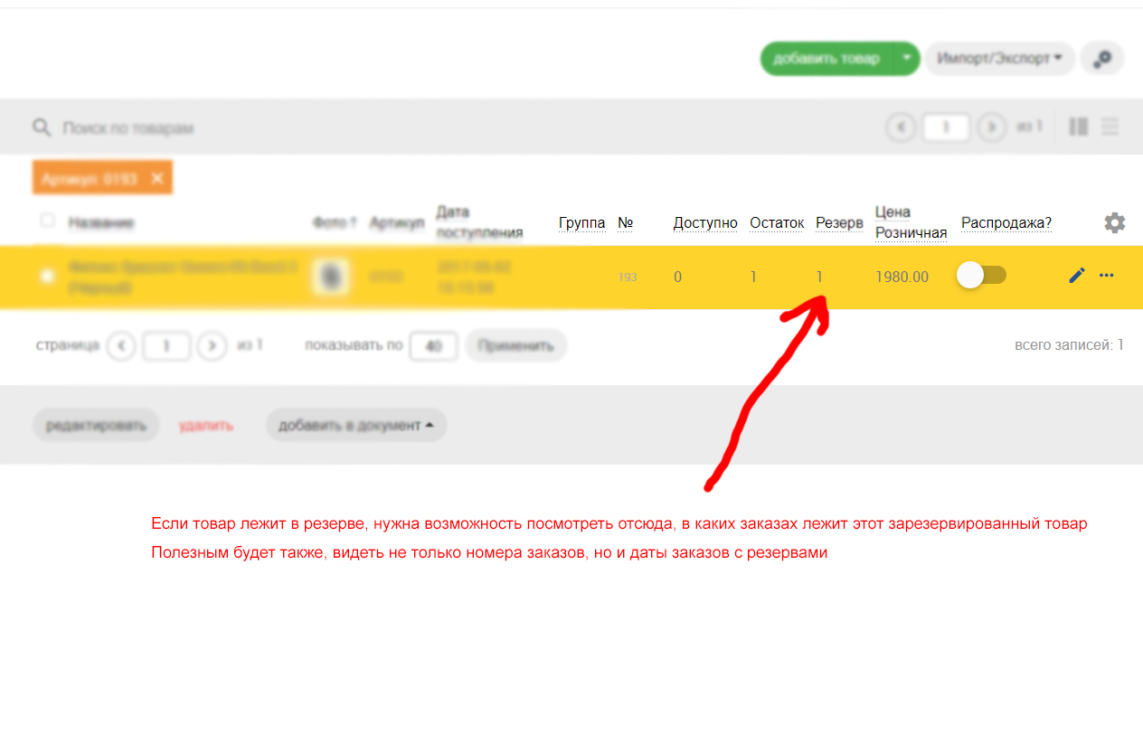 Сейчас в спике товаров есть возможность видеть товары в резерве, но нет возможности быстро посмотреть в каких заказах лежат зарезервированные товары. Предлагаю это доработать.