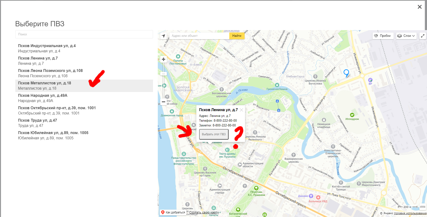 Доработать выбор ПВЗ на карте (desktop версия)