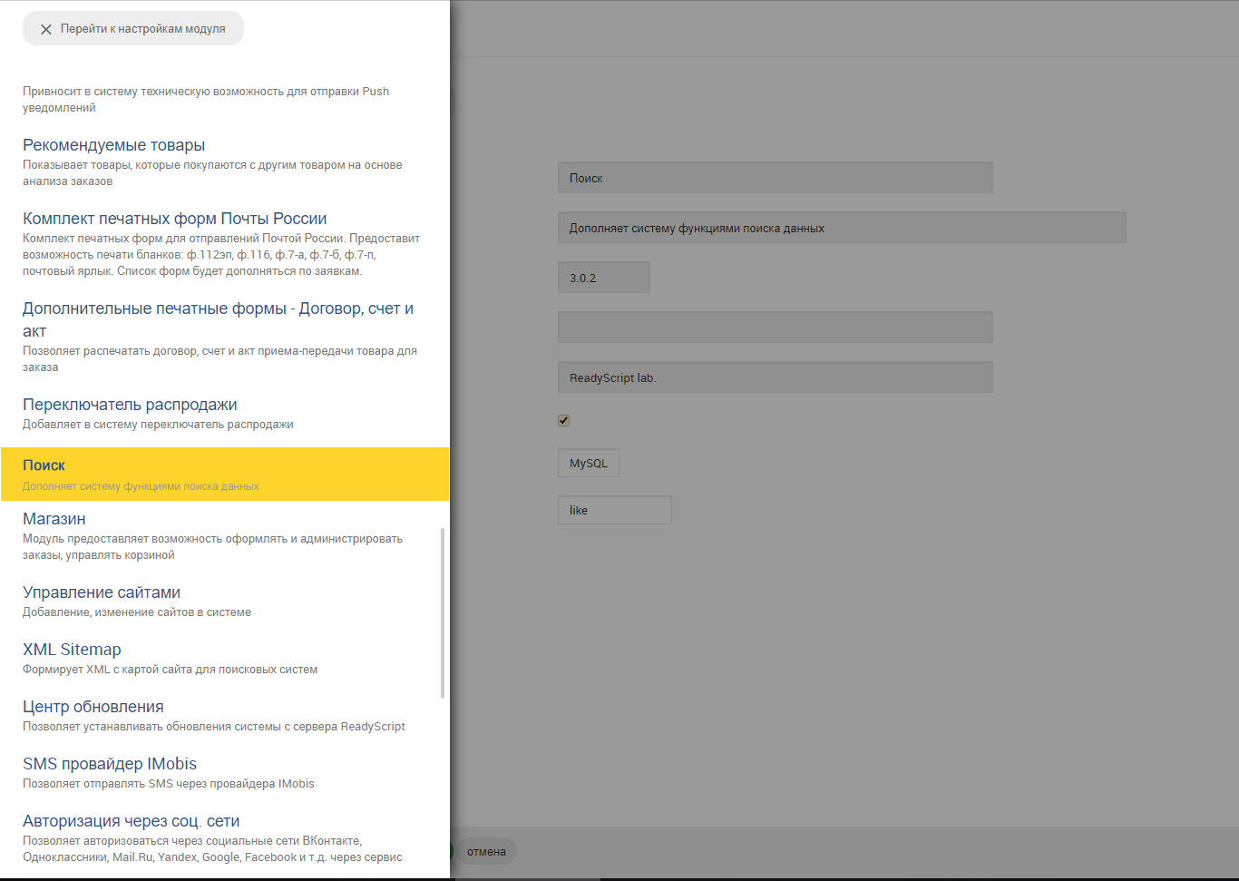 Если открыто меню настройки любого из модулей, и мы хотим вернуться к списку всех модулей, то нужно постоянно помнить какой модуль сейчас редактируется, чтобы например продолжить настройку следующего по списку модуля. Предлагаю в этом списке сделать подсветку текущего модуля, редактирование которого открыто, и при открытии списка модулей переводить фокус на пункт текущего редактируемого модуля. В текущем состоянии этот список заставляет нервничать при работе с cms.