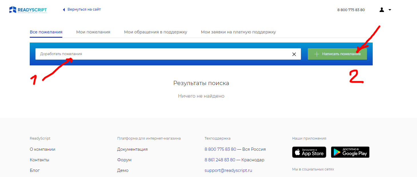 Пожелание такое: нужно сделать так, что, если похожее пожелание не найдено, то при нажатии на кнопку "Написать пожелание" , из поля поиска, тема запрашиваемого пожелания чтобы переносилась в тему создания нового пожелания )