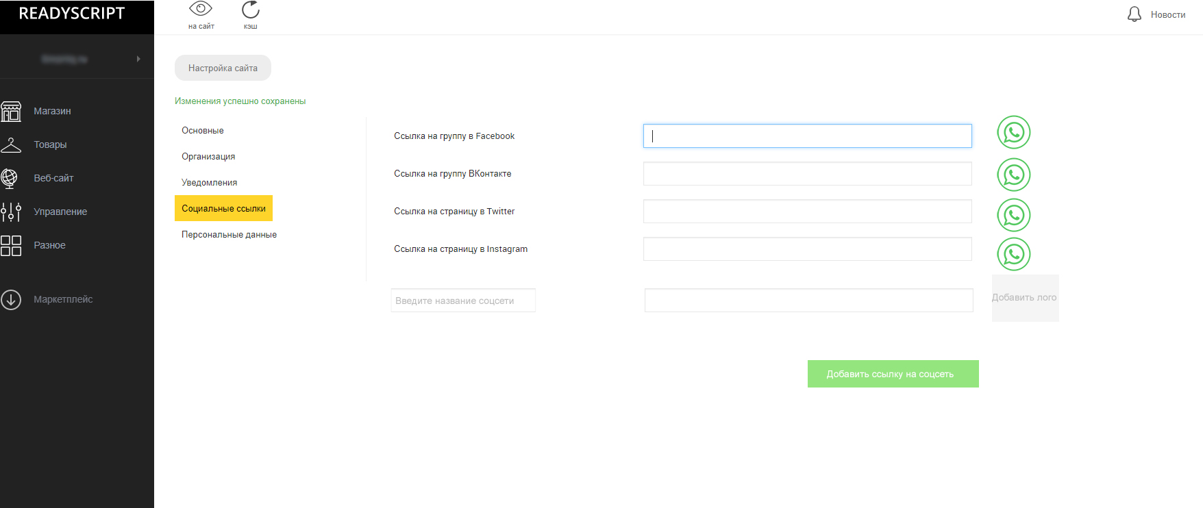 Предлагаю в Настройки сайта > Социальные ссылки - доработать этот раздел.