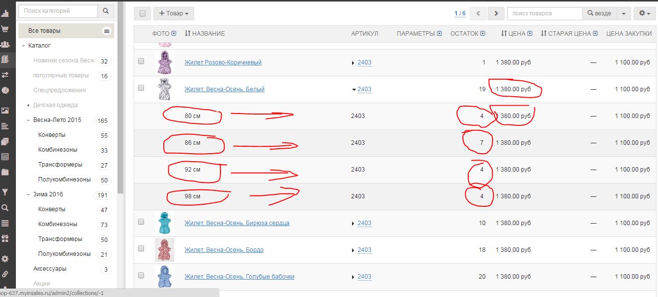 Надо сделать так чтобы я щелкнул на товаре и под ним открылся список размер количество и цена и просто ввести остатки для каждого размера и все