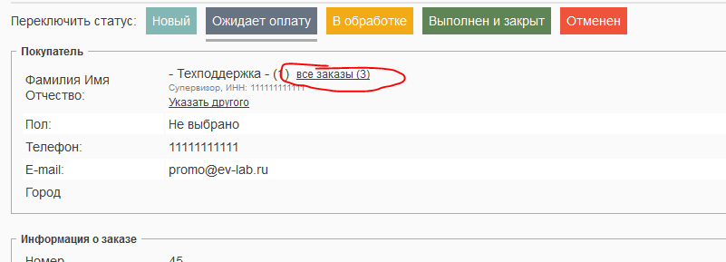 Список заказов пользователя, корзины пользователя