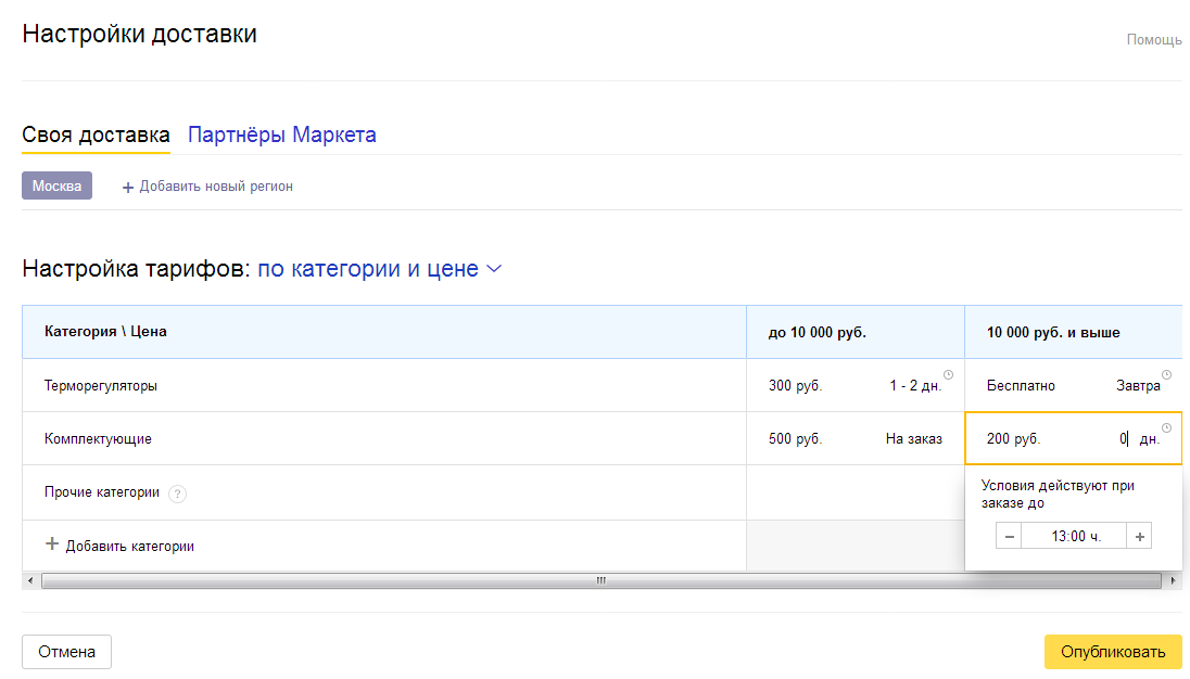Есть необходимость сделать разную стоимость доставки для разных категорий.