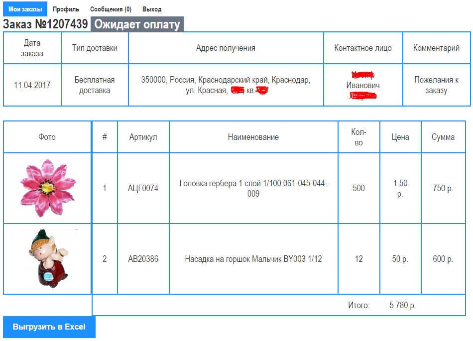 Добавьте возможность покупателю в личном кабинете печатать (выгружать в Excel) свой заказ.