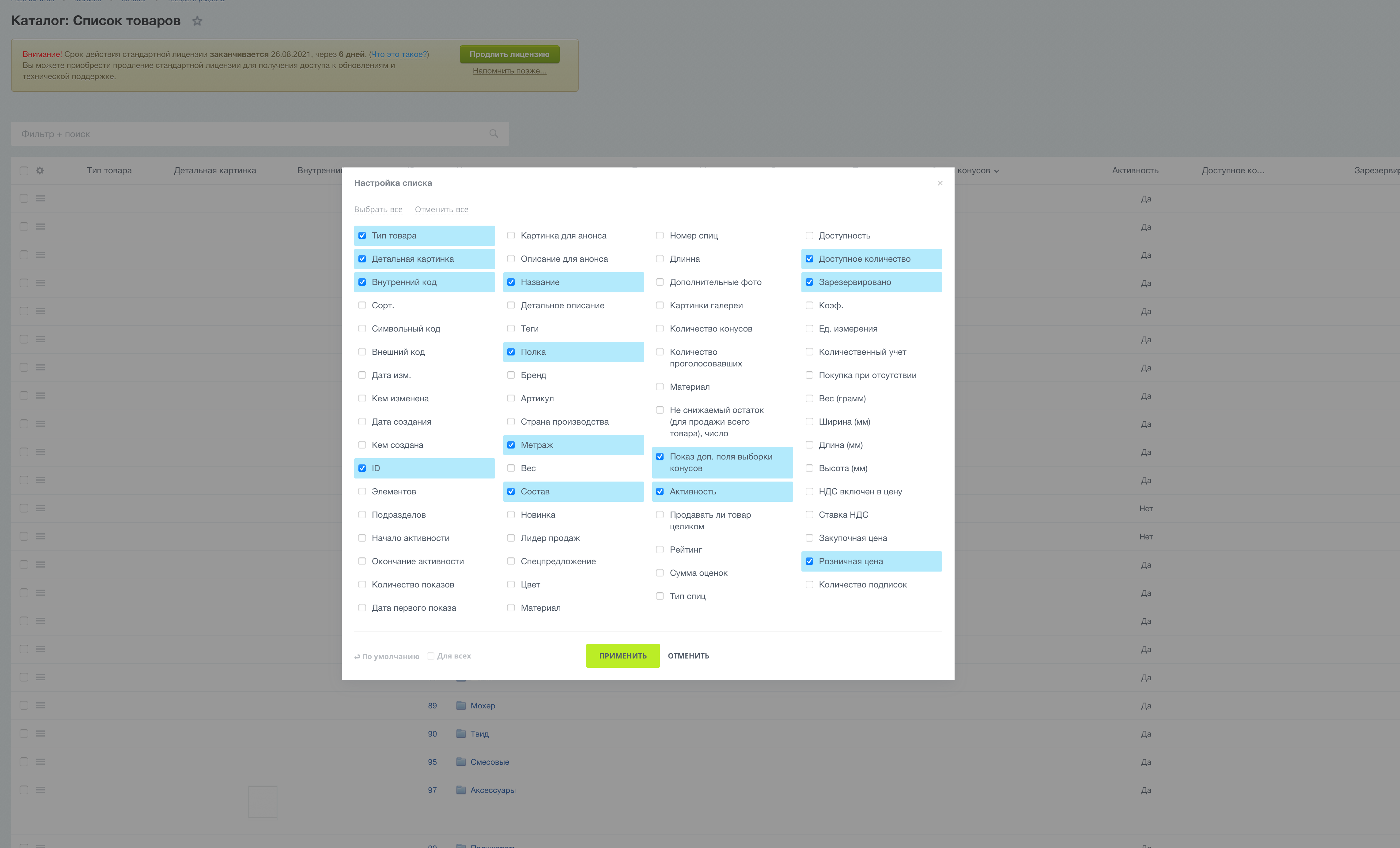 Вывод характеристик в каталоге товара
