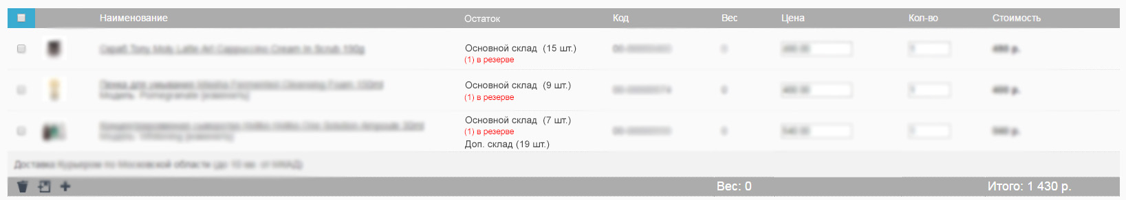 Предлагаю добавить вывод у товаров остатка на складе в просмотре/редактировании заказа. Тем самым мы заранее будем знать доступный остаток, и если клиент захочет добавить товаров в заказ, нам не придется искать остатки в других местах админ панели или в 1с.