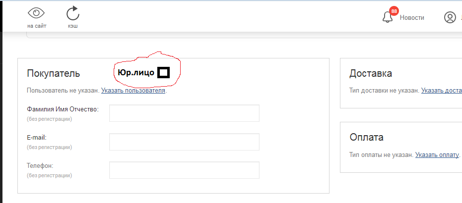 Заказ на Юр.лицо из админки