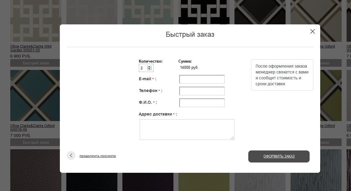 Заказ в 1 клик с выбором количества